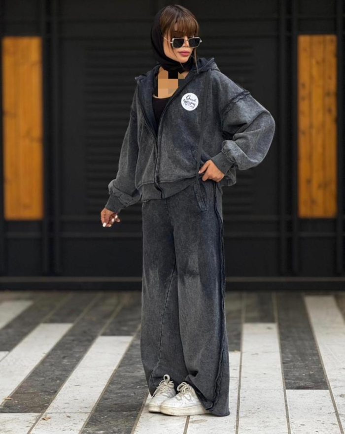 ست سویشرت شلوار دورس ۳ نخ سنگشور شده کد 1456